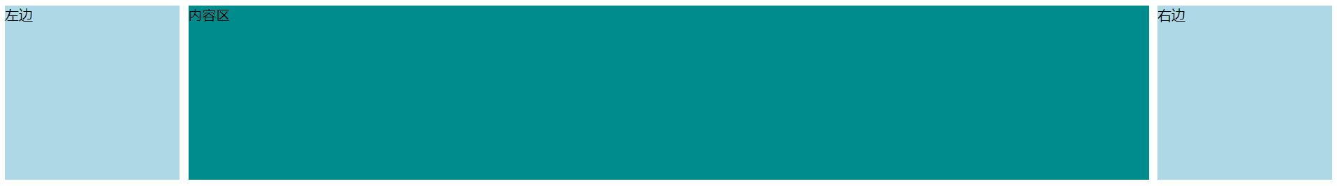 | <div class="content clearfix"> <div class="left">左边</div> <div class="right">右边</div> <div class="center">内容区</div> </div>